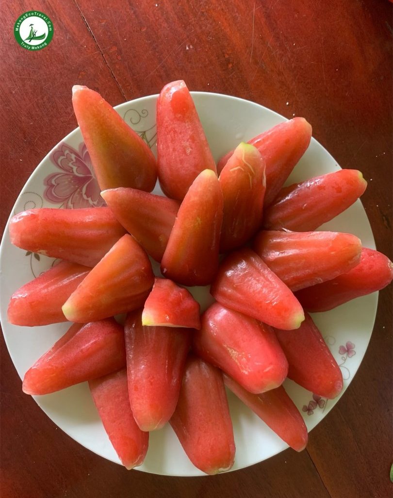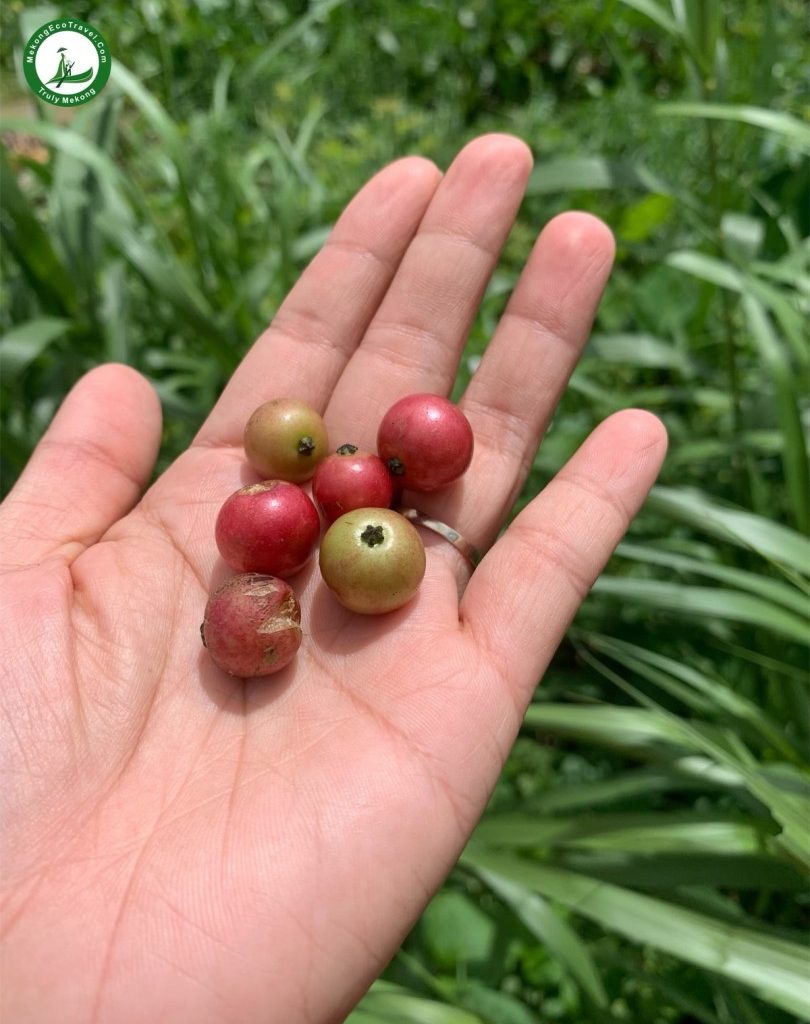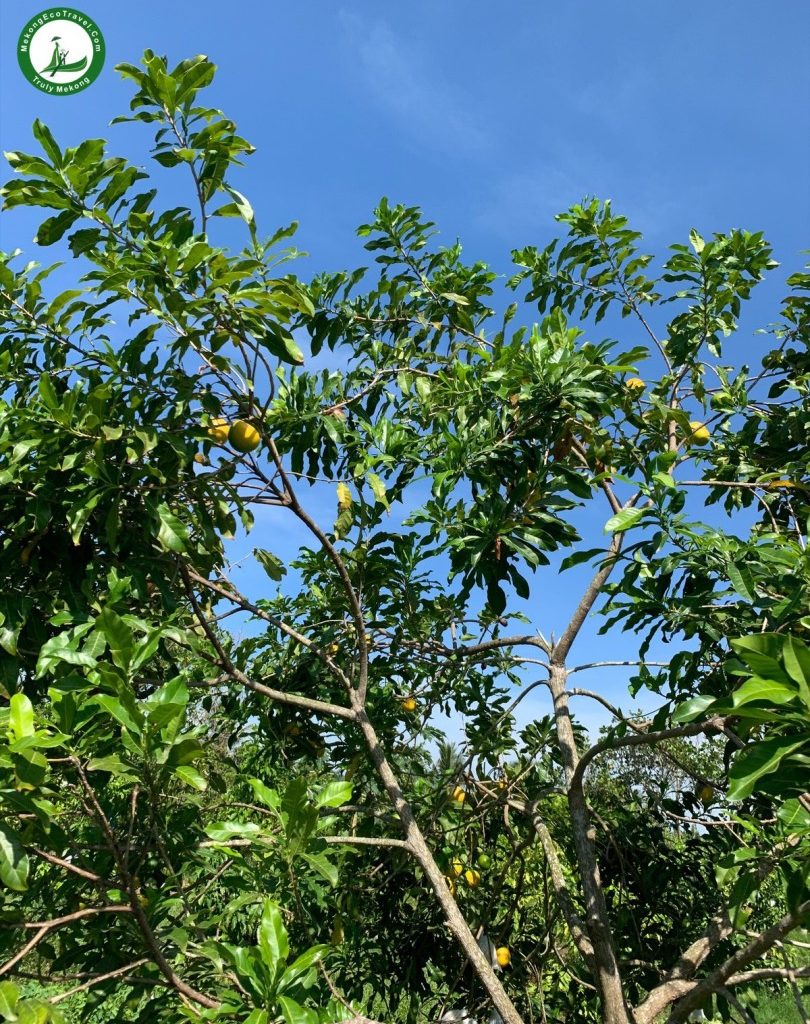 11:45 AM: Walk around the fruit gardens to see many kinds of tropical fruits (pomelo, rambutans, guava, rose apple… depending on the season). Experience climbing on the trees (sometimes) to pick the fruits and enjoy the fresh fruits right in the gardens. Rowing the boat around the small canals in the garden.