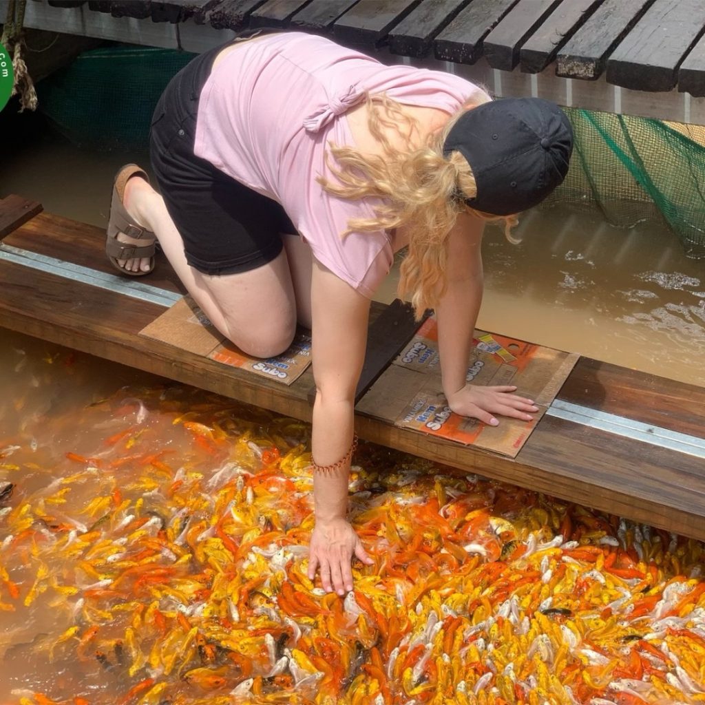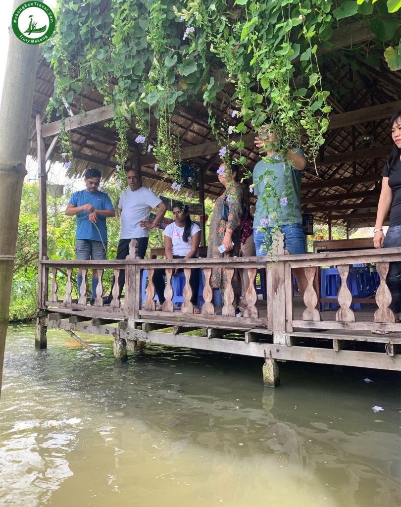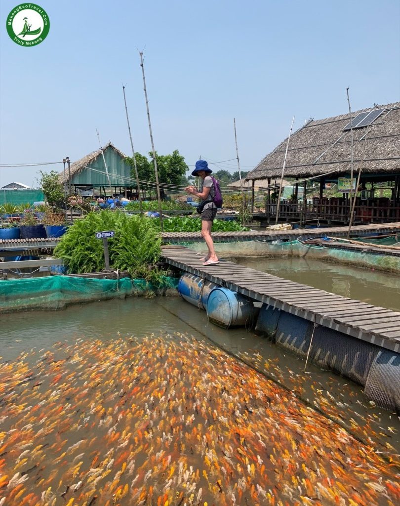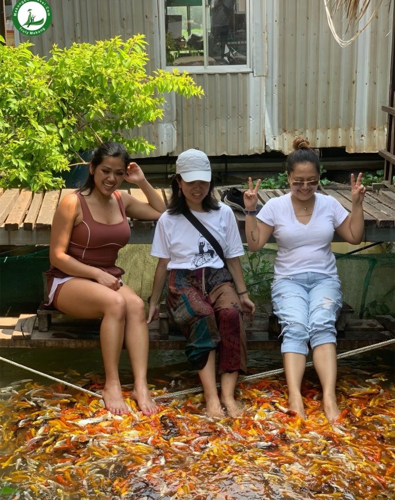 10:30 AM: One of the best ways to explore a part of real life on the Mekong River is taking a boat overviewing the floating fish farm village on Hau River. The local people are living and working as fishermen right in their floating houses. You will stop at a floating fish farm and listen to the Story of the fish in the Mekong River. Experience fish massage with gorgeous and colorful freshwater fish. Wonder about the giant fish on the farm that was called: “Monster Fish” and other interesting things are waiting for you to discover.