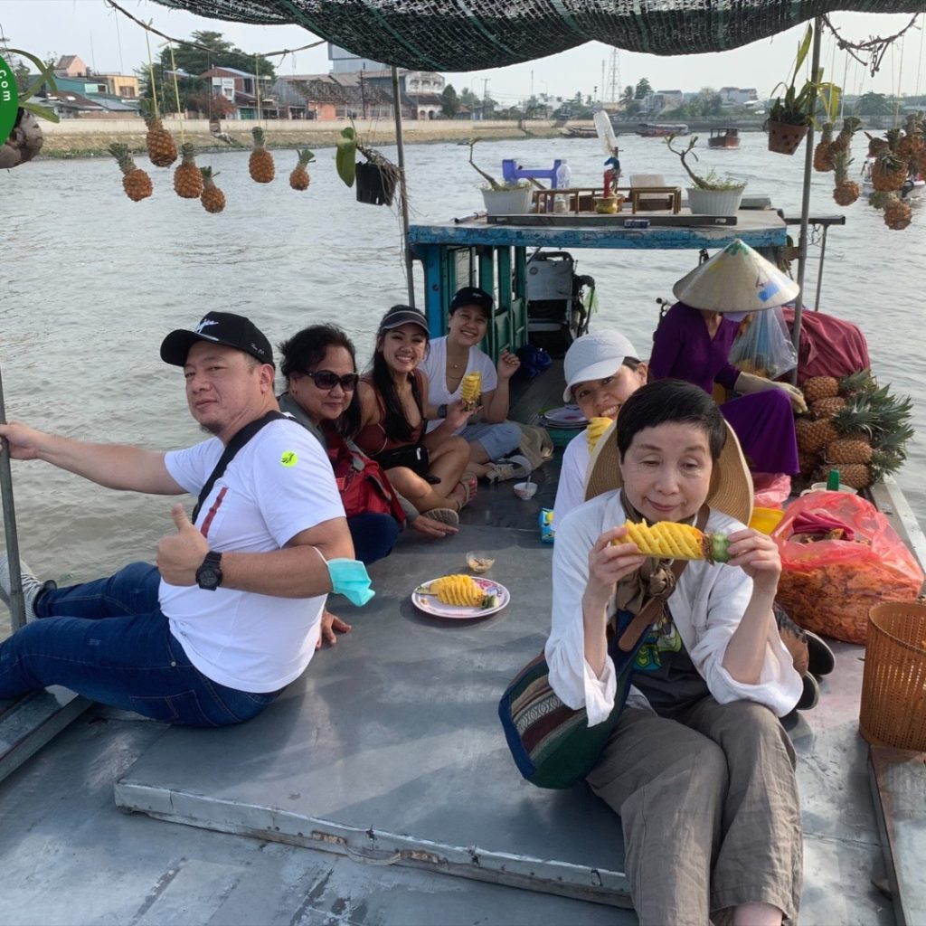 05:30 AM: Reach to the harbor and take a sampan boat to explore Cai Rang floating market – a must-have floating market in Can Tho and watch the sunrise on the river (sometimes). Enjoy “The Queen Fruit: PINEAPPLE” right on the boat near to the floating market. Have breakfast at the boat with “Shaking Rice Noodle Soup: Hủ tiếu” and “Vietnamese Càfe”.