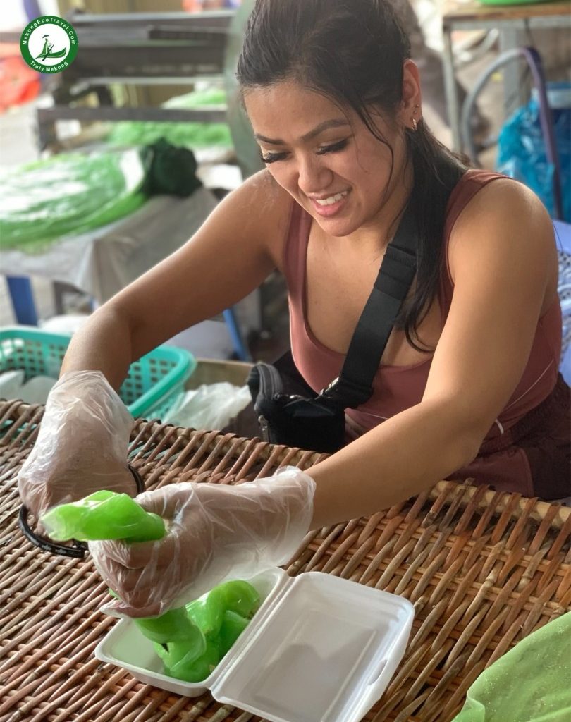 12:15 PM: Visit one more local house for traditional home cooking to make cakes and enjoy the Vietnamese typical local meals in the Southern traditional house and garden. Relaxing on the hammocks next to the trees.