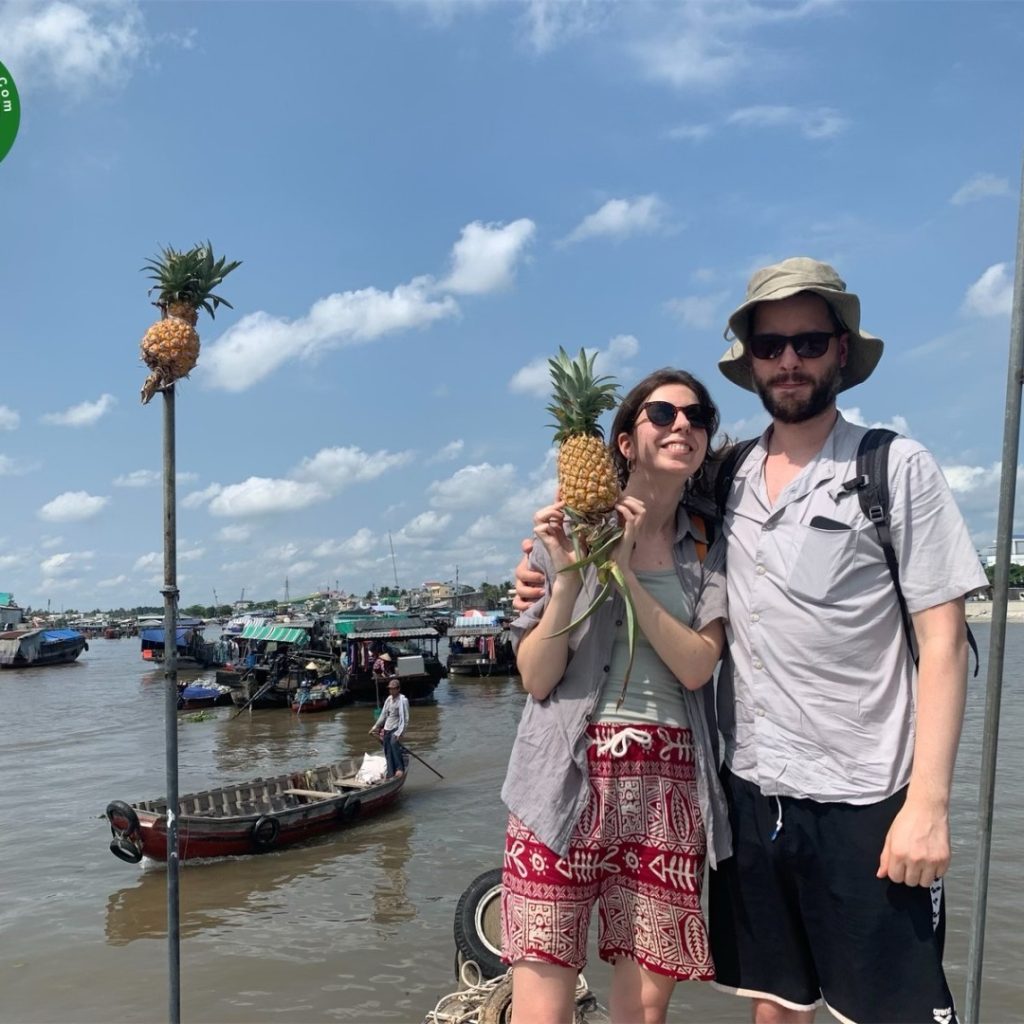 06:00 AM: Our trip will keep going to go to explore Cai Rang floating market – a must-have floating market in Can Tho. Have breakfast at the boat with “Shaking Rice Noodle Soup: Hủ tiếu” and drink Vietnamese Cà phê. Enjoy the freshest pineapple right on the boat.
