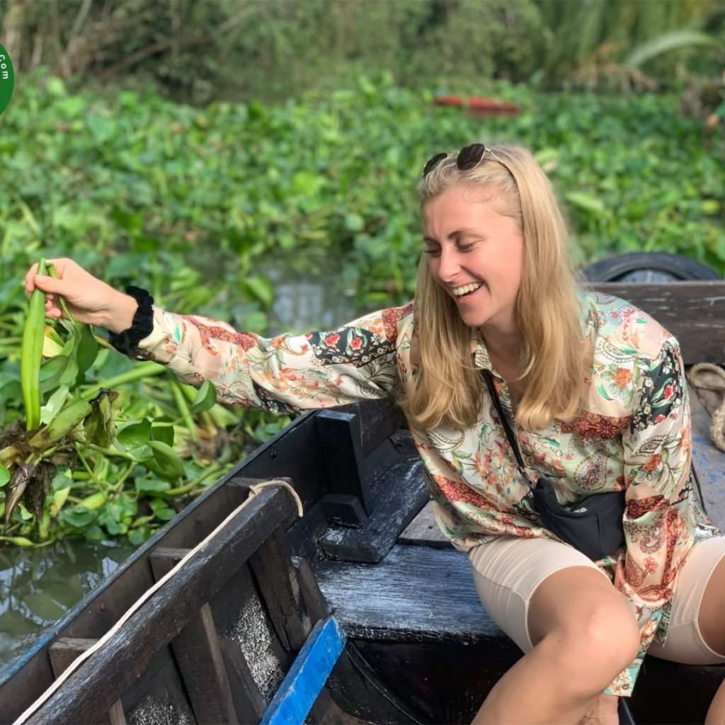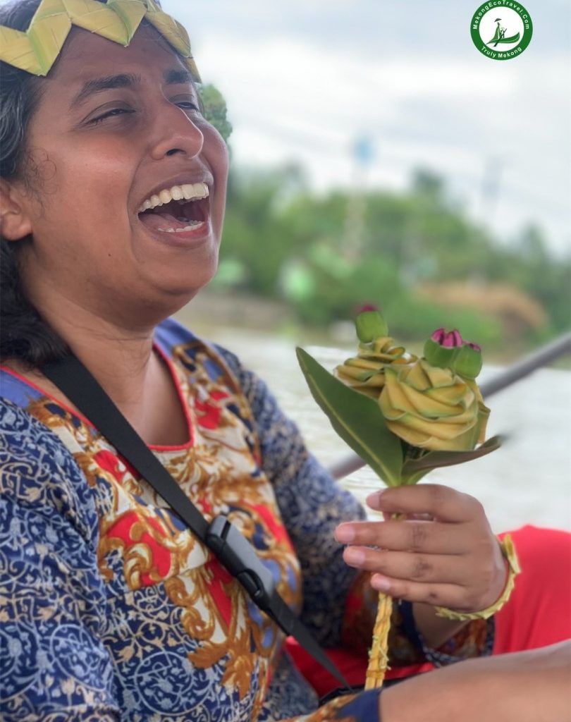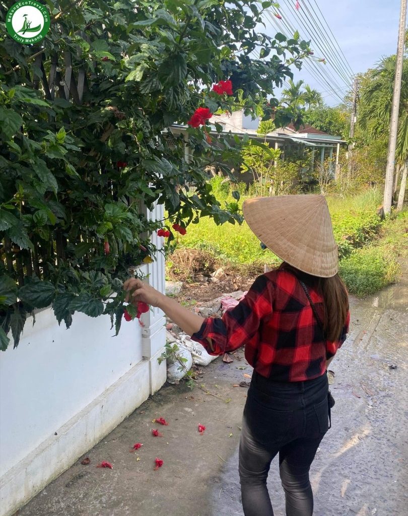 08:00 AM: Stop at the house on the riverside and walking through the small road along the riverside to watch the local life, see they make baby plants, and flowers.