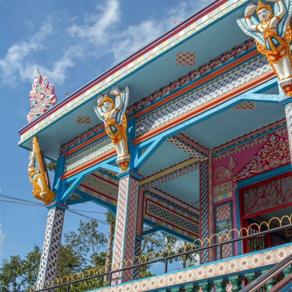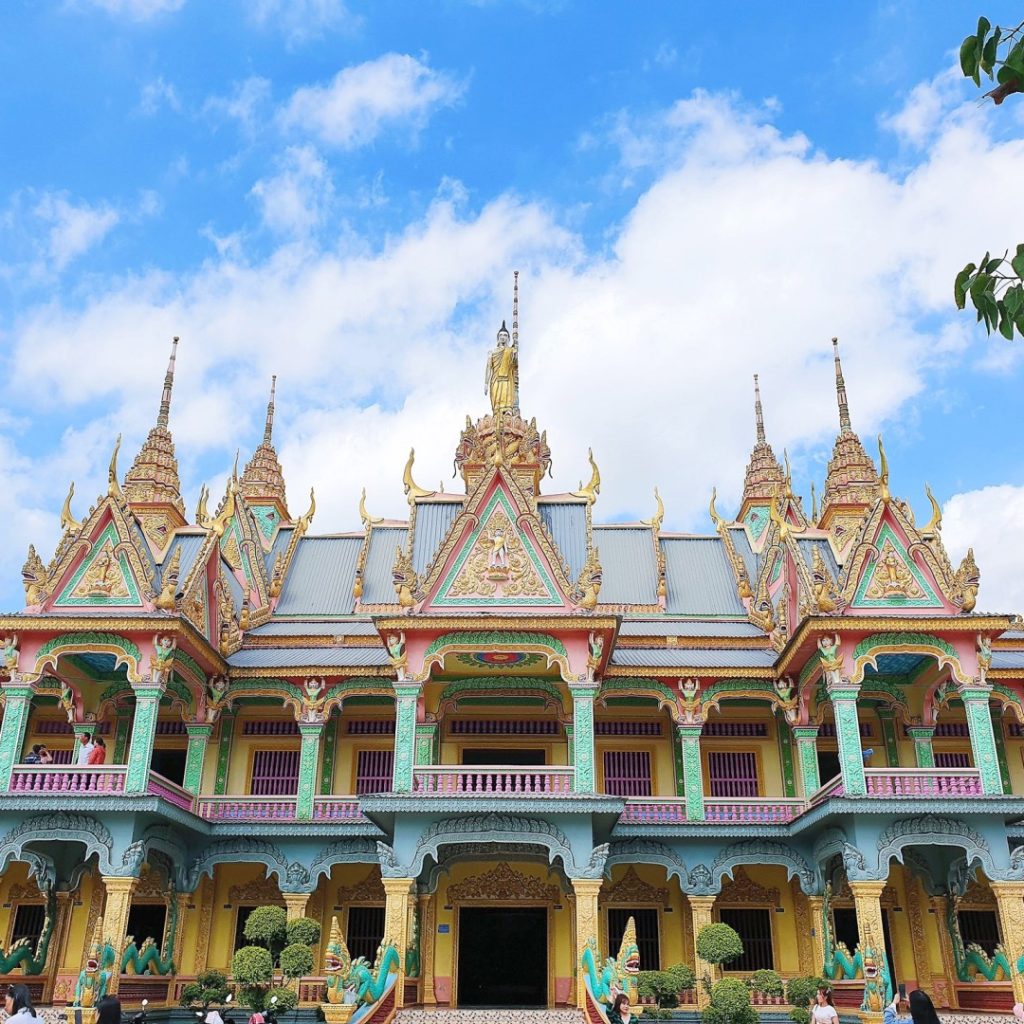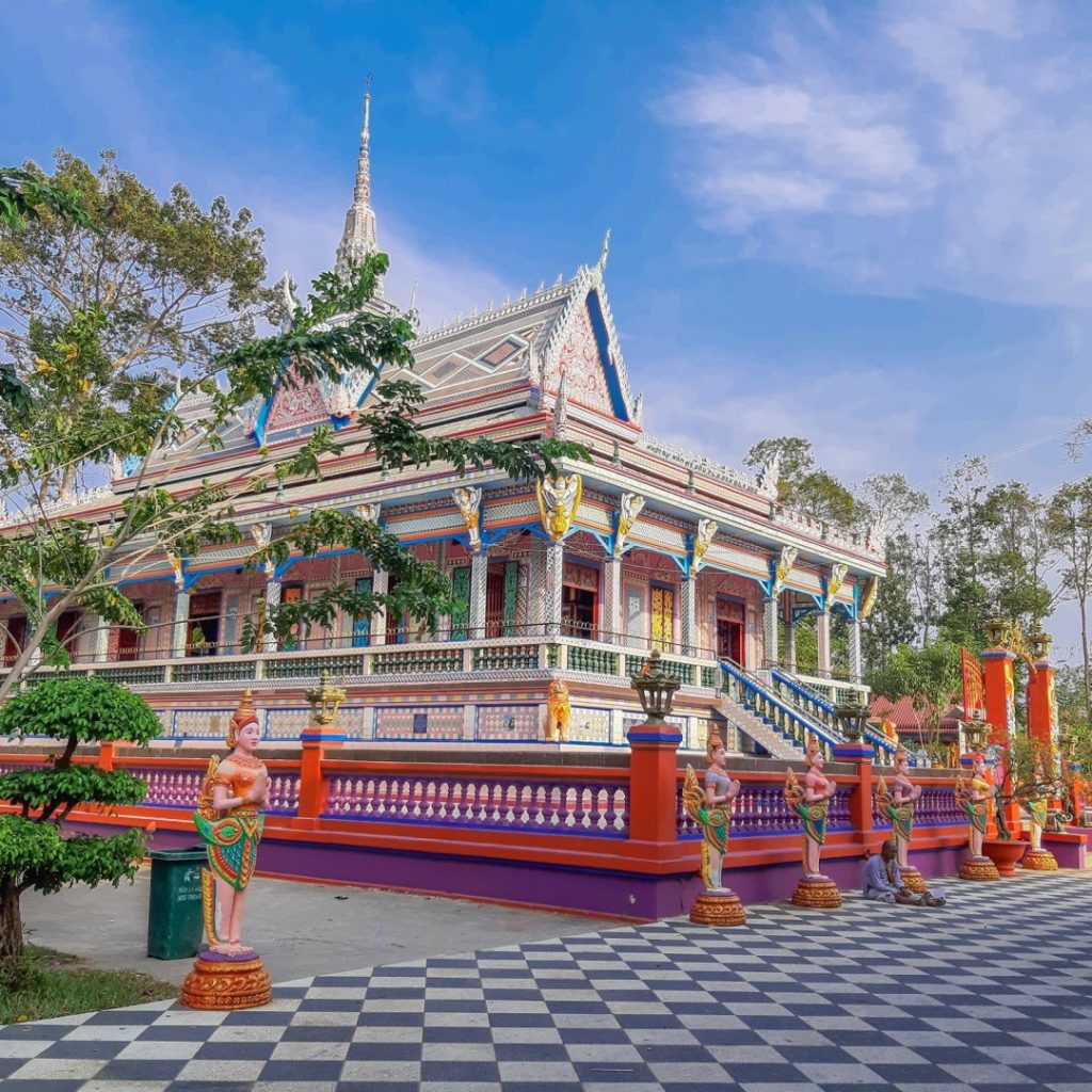 07:30 AM: Our guide will pick you up from your hotel and walk to visit Pagodas and Temples in Soctrang City such as Som Rong Pagoda, Sa Lon Pagoda, Clay Pagoda, Bat Pagoda, and Kh’leang Pagoda to understand the cultural identity, thought and religions of the locals in Mekong Delta.