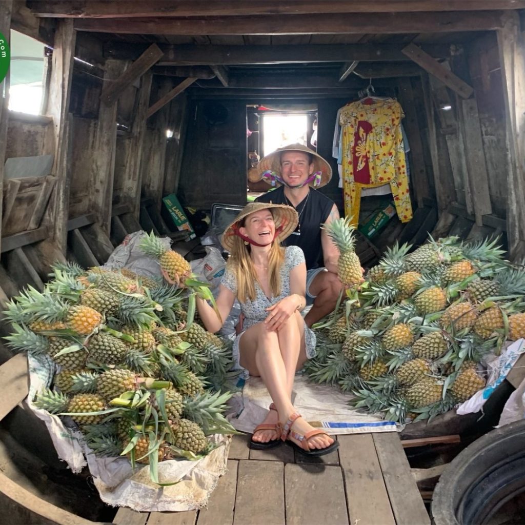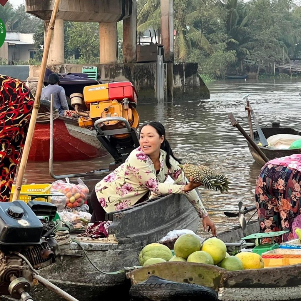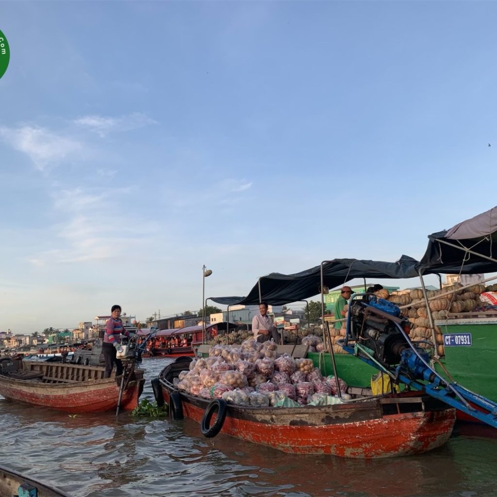 06:00 AM: Arrive at Phong Dien Floating Market in the early morning and wake up with a cup of Vietnamese coffee or tea and taste some Vietnamese traditional fork Cake and the freshest pineapple on the floating boat!
